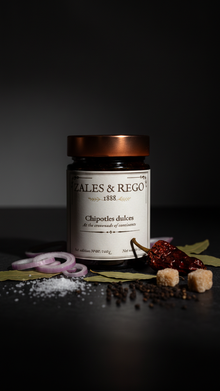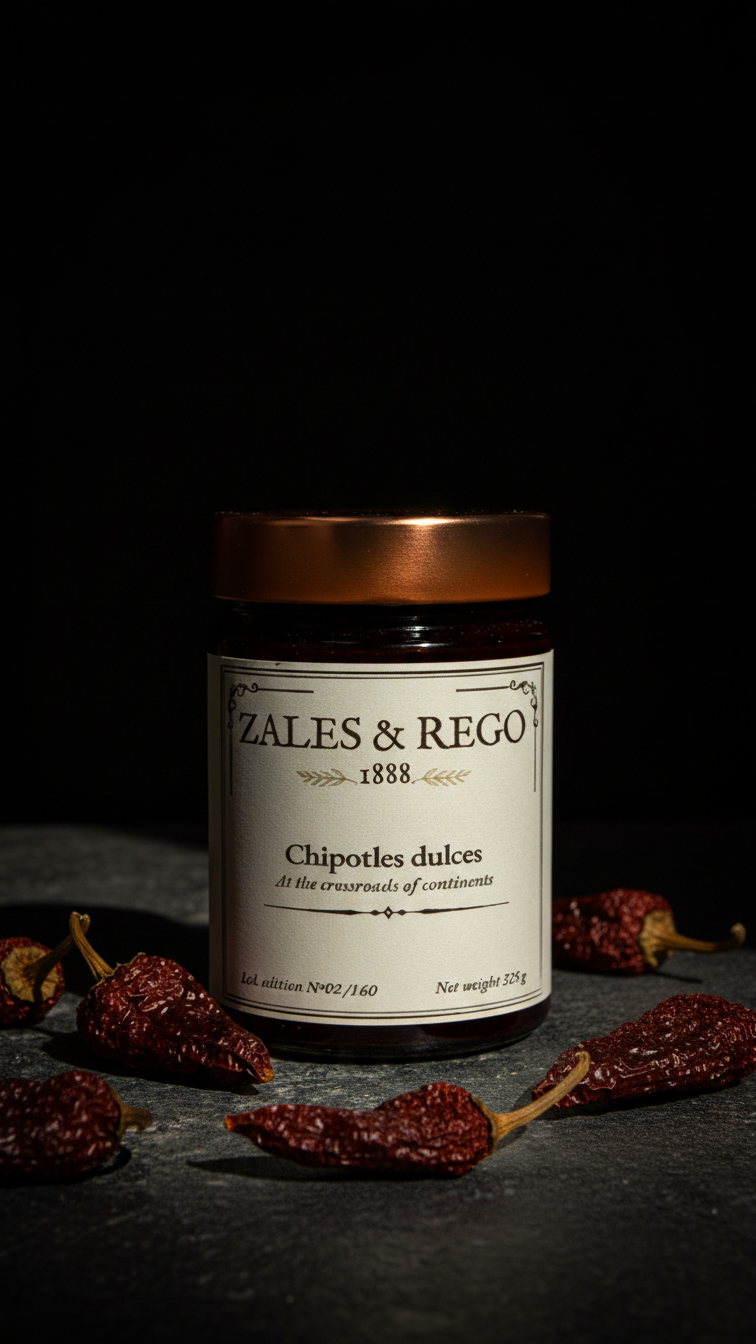 Chipotles dulces en adobo artesanal con piloncillo mexicano. Ahumado profundo, dulzura ancestral de la caña. Elaboración propia Miapuccia SL. 220g.